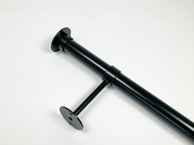 De afstandsteun zwart Ø32 mm – 8 cm tot hart buis is een perfecte accessoire voor uw garderobestang of buis in RAL 9005 zwart. Deze afstandsteun is ideaal voor het extra ondersteunen van langere stangen (vanaf 1500 mm / 150 cm) en kan eenvoudig worden gecombineerd met flenzen. Al onze flenzen worden met zorg in onze eigen werkplaats geproduceerd en zijn hoogwaardig gecoat voor een duurzame afwerking.