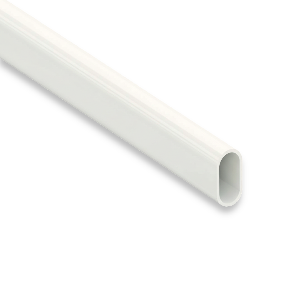 De buis ovaal wit Ø38×20 wordt veel gebruikt als garderobestang. Dankzij de ovale vorm is deze buis bijzonder sterk en daardoor ideaal om kleding aan op te hangen. Het is de klassieke kledingstang, maar dan uitgevoerd in een frisse, moderne witte kleur.