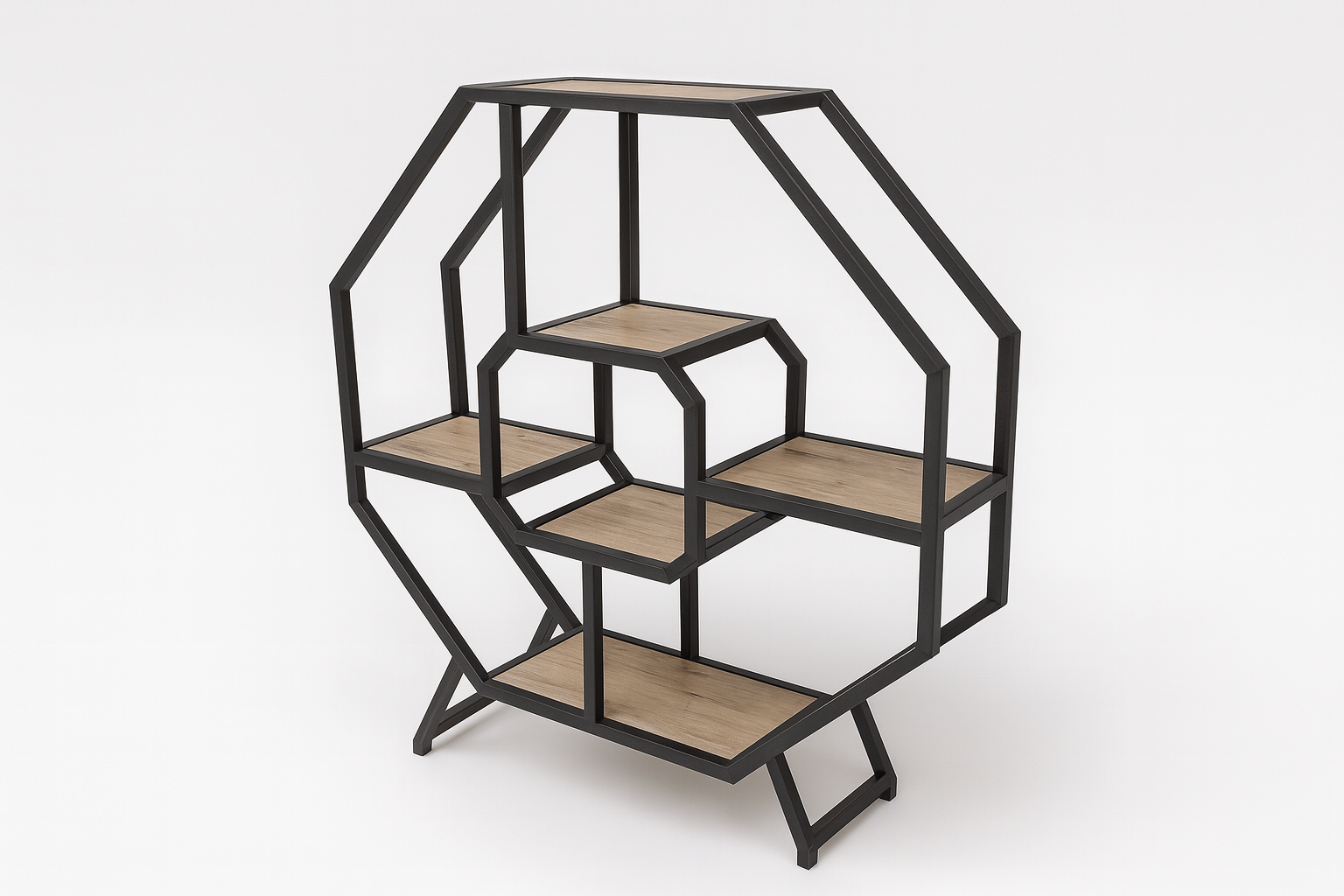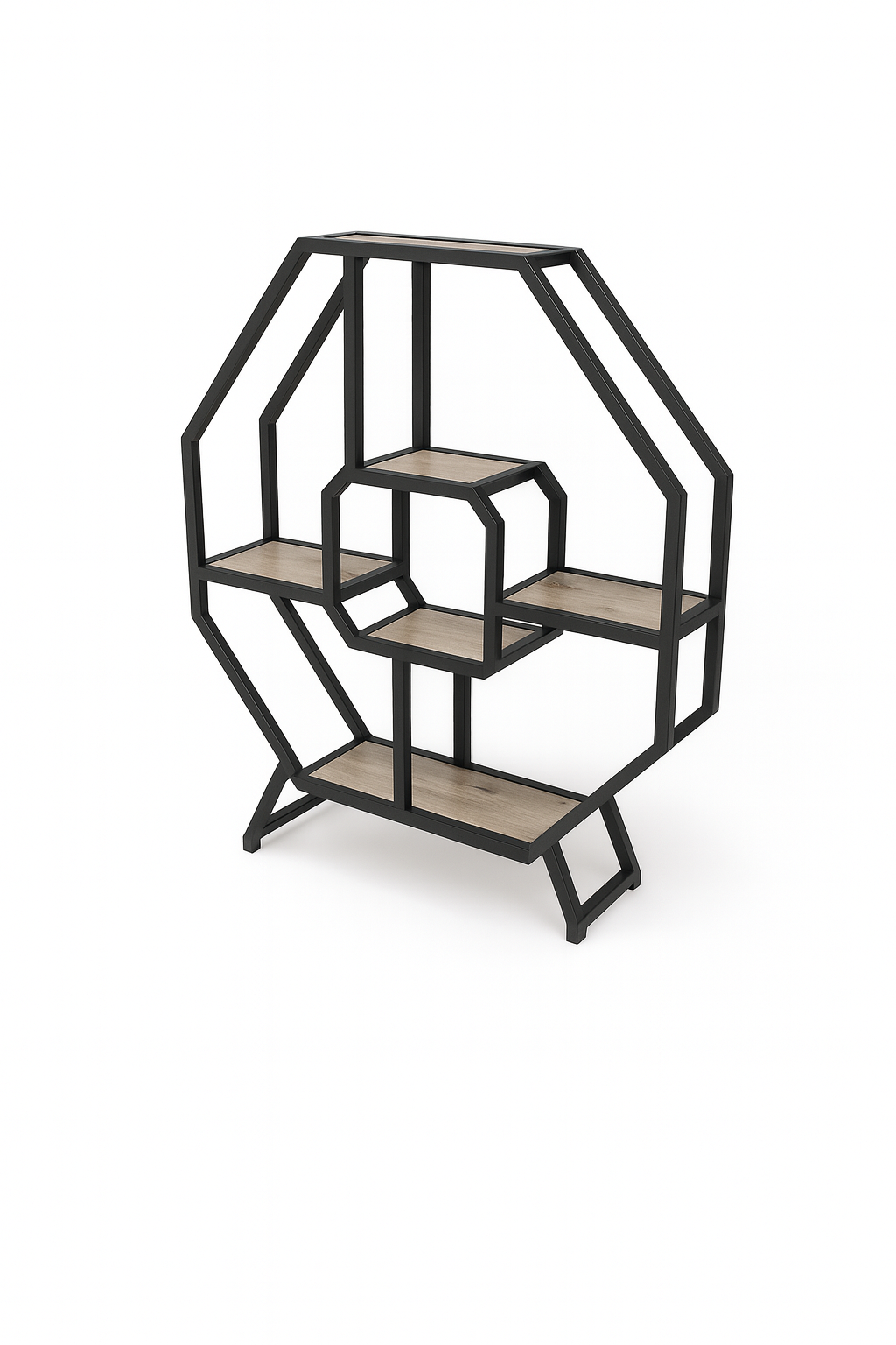 Het design wandmeubel honingraat op pootjes heeft een hoogte van 140 cm en een breedte van 118 cm. De diepte is 30 cm. Het materiaal is geolied staal. Bij dit meubel in combinatie met houten leggers. Het design is ook zonder pootjes leverbaar. Het idee achter dit wandmeubel is een eyecatcher in uw interieur. Om bijzondere objecten te etaleren. Dat kan tegen een wand of als roomdivider. Een andere maatvoering of afwerking is mogelijk. Neem dan contact met ons op. Wij kunnen dit concept naar believen uitbreiden of personaliseren.