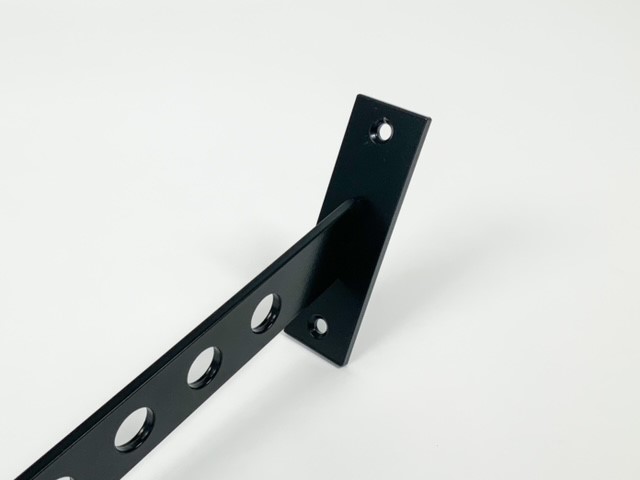 De montageplaat van de kledinghouder is voorzien van twee verzonken boorgaten van 5,8 mm. Metaalstore levert inclusief zwarte schroeven en pluggen zodat u de kledinghouder RAL 9005 mat zwart waterval model stevig kunt monteren.