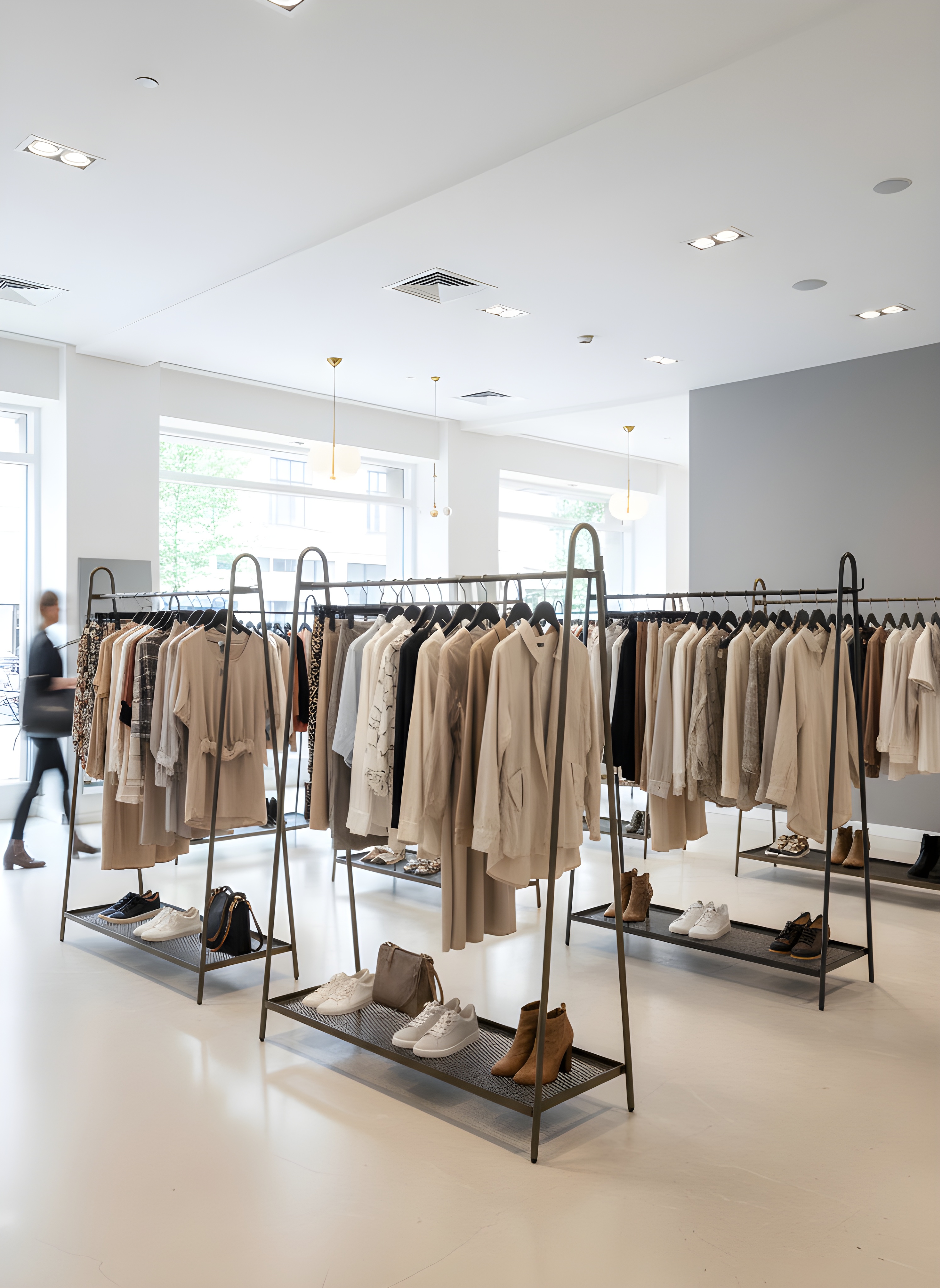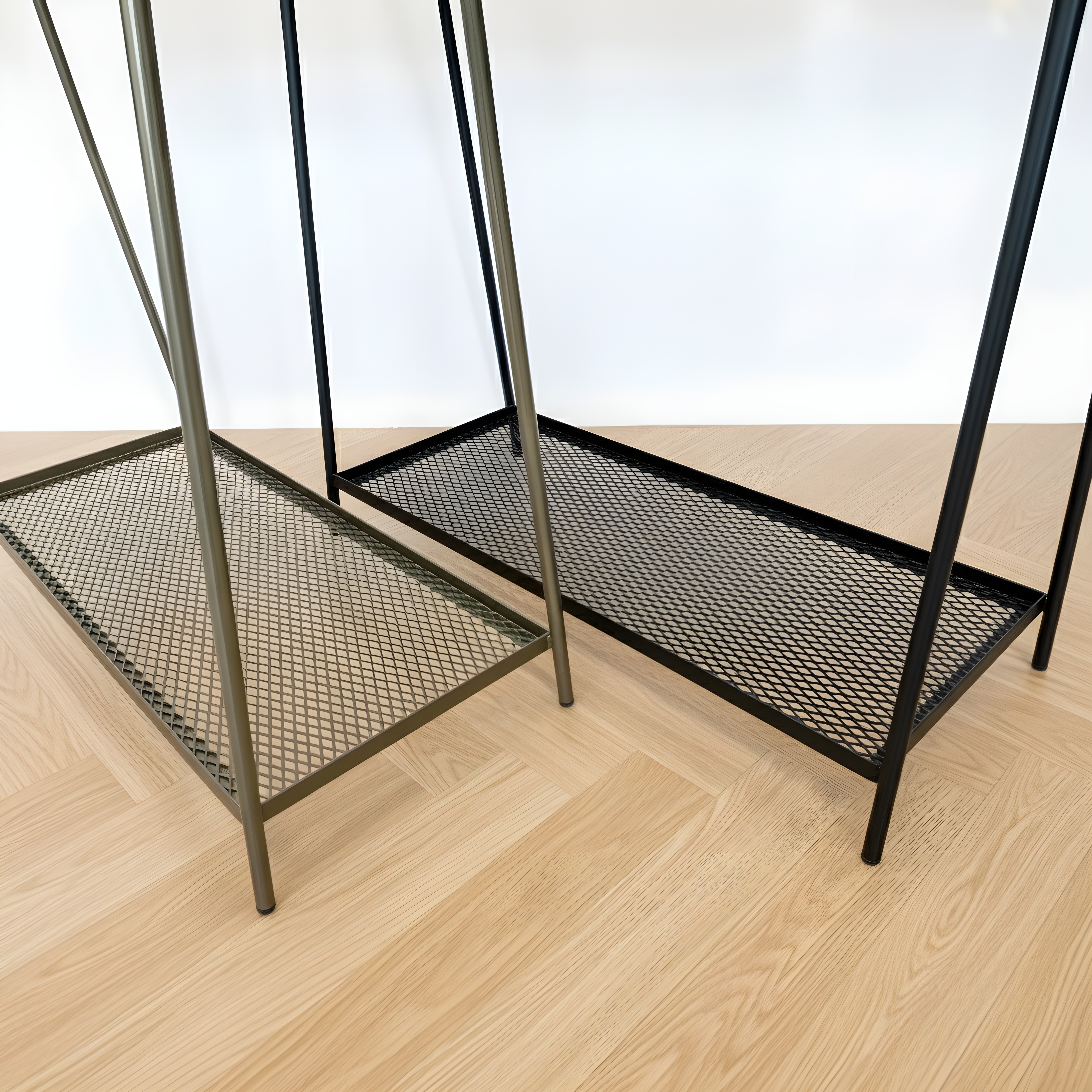 Dit stevige kledingrek met schoenenrek is ideaal voor winkels, showrooms of thuisgebruik en geeft uw kledingpresentatie een luxe uitstraling.