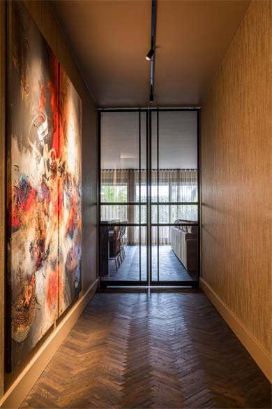 Stalen taatsdeuren draaien om een verticale as in plaats van langs een traditioneel scharnier. Ze creëren een indrukwekkend en eigentijds effect, ideaal voor moderne interieurs.